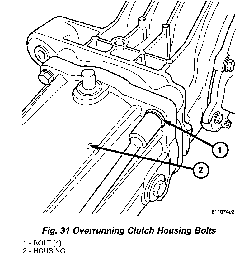 10. Install and torque overrunning clutch housing-to-differential assembly bolts (Fig. 31) to 60 Nm (44 ft. lbs.).