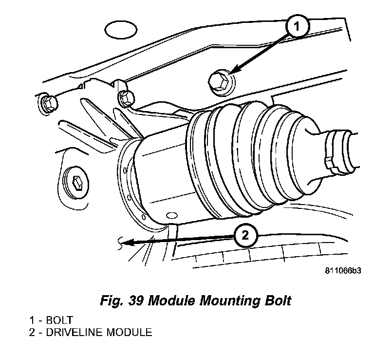 5. Install and torque module-to-cradle bolts to 102 Nm (75 ft. lbs.) (Fig. 39) (Fig. 40).