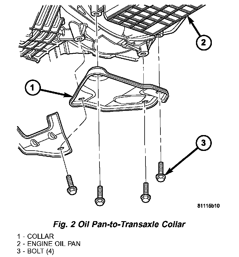 5. Remove oil pan-to-transaxle collar (Fig. 2).