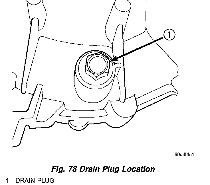 All T350 transaxles are equipped with a drain plug. The drain plug is located on the lower right side of the transaxle differential housing (Fig. 78). Tighten drain plug to 28 Nm (250 inch lbs.).