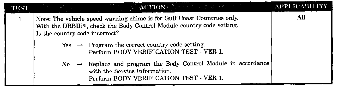 Vehicle Speed Warning Chime Problem