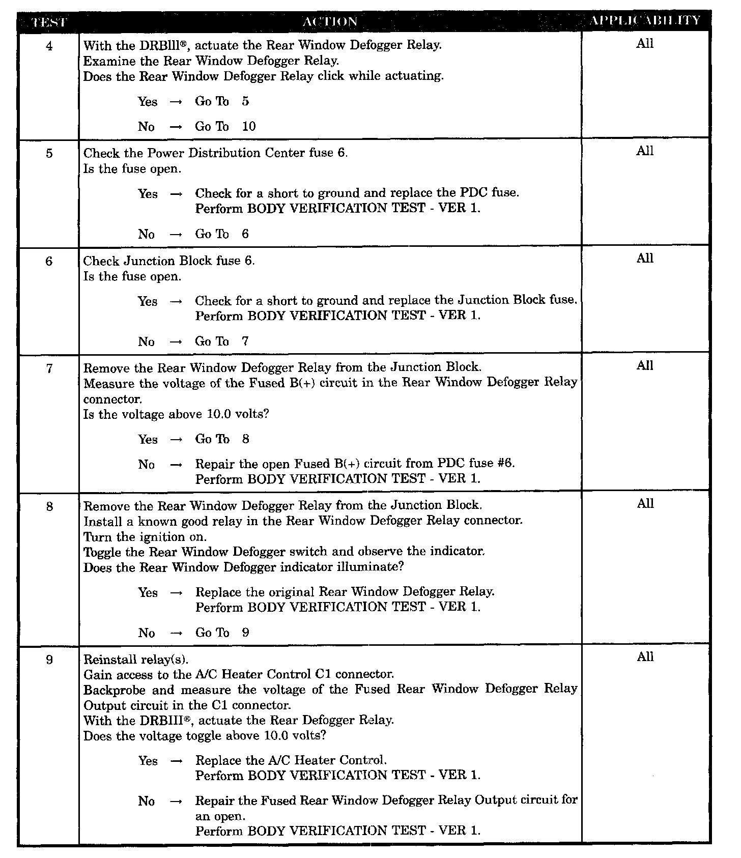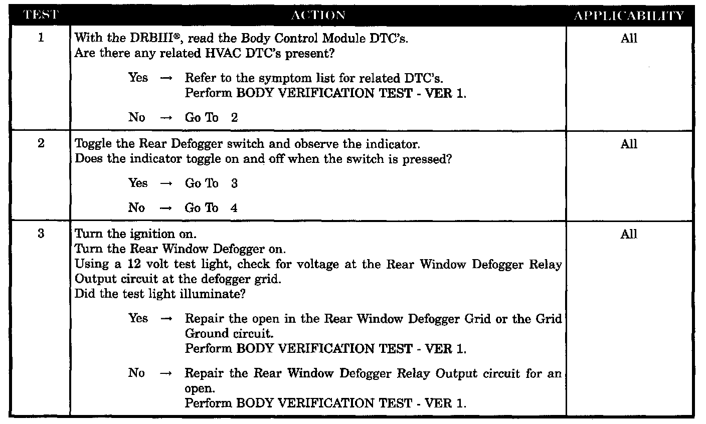 Rear Window Defogger Inoperative (Equipped With Manual Temp Control)