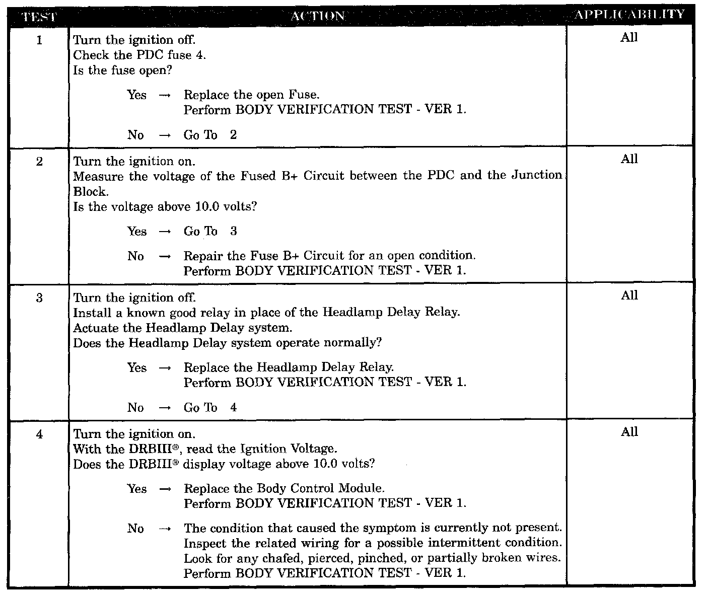 HEADLAMP DELAY RELAY INOPERATIVE