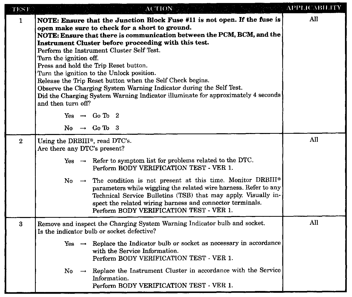 CHARGING SYSTEM WARNING INDICATOR NOT OPERATING PROPERLY