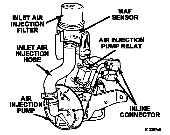 During vehicle cold start, the Air Injection System (AIS) delivers a controlled amount of outside air into the exhaust system, upstream of the catalytic converters, in order to help reduce hydrocarbon and carbon monoxide gas emissions.