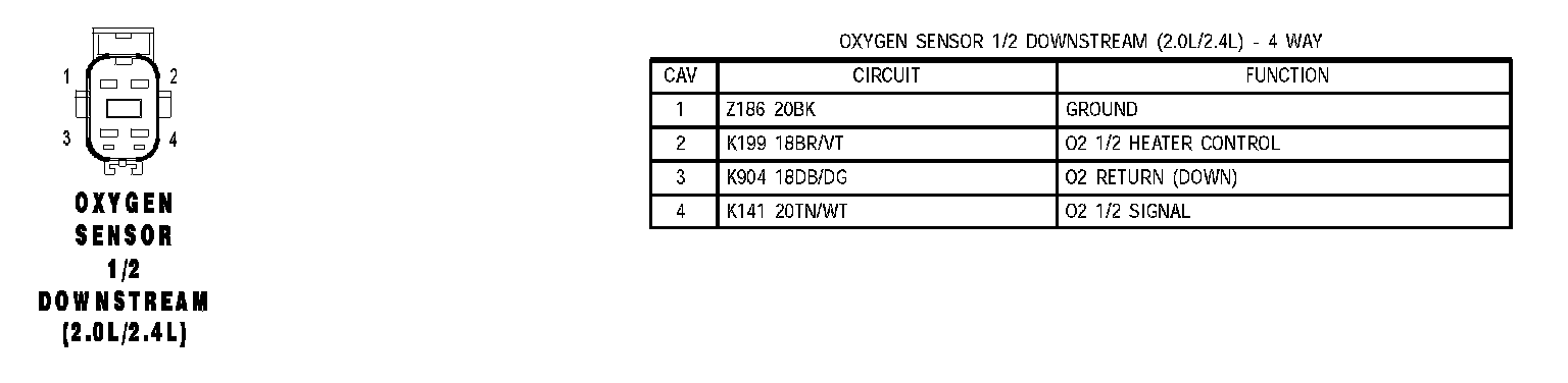 Oxygen Sensor 1/2 Downstream (2.0L/2.4L):