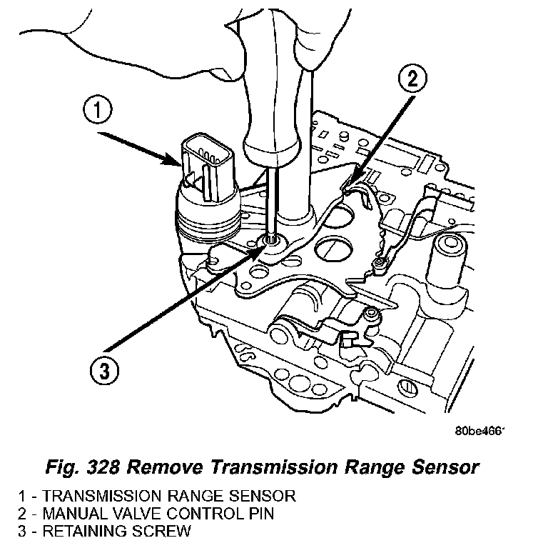 2. Remove transmission range sensor retaining screw and remove sensor from valve body (Fig. 328).