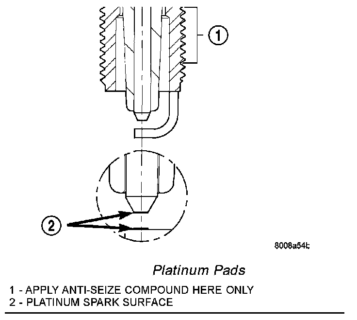 When the spark plugs use a single or double platinum tips and they have a recommended service life of 100,000 miles for normal driving conditions per schedule A in this manual The spark plugs have a recommended service life of 75,000 miles for severe driving conditions per schedule B in this manual A thin platinum pad is welded to both or Just the center electrode end(s) as shown in Extreme care must be used to prevent spark plug cross threading, misgapping and ceramic insulator damage during plug removal and installation.