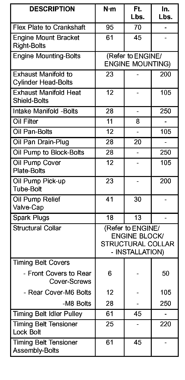 Engine Torque Specifications