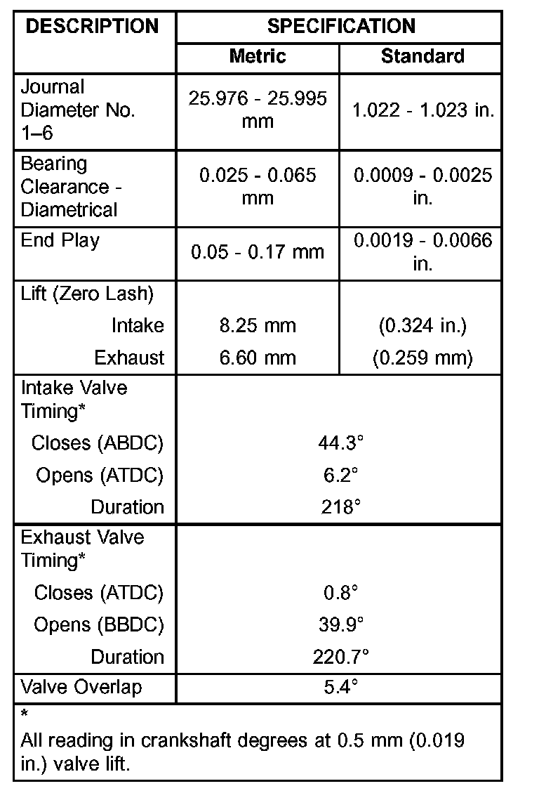 CYLINDER HEAD CAMSHAFT BEARING BORE DIAMETER