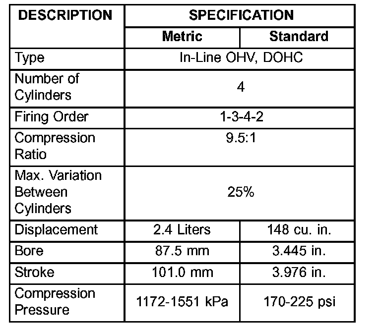 2.4L ENGINEGENERAL SPECIFICATIONS