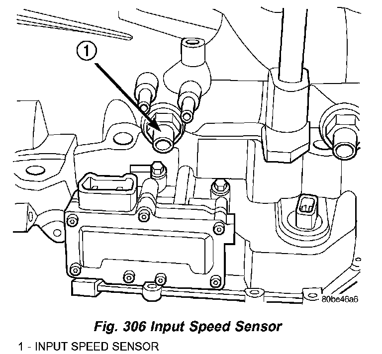 3. Install input speed sensor (Fig. 306) and torque to 27 Nm (20 ft. lbs.).