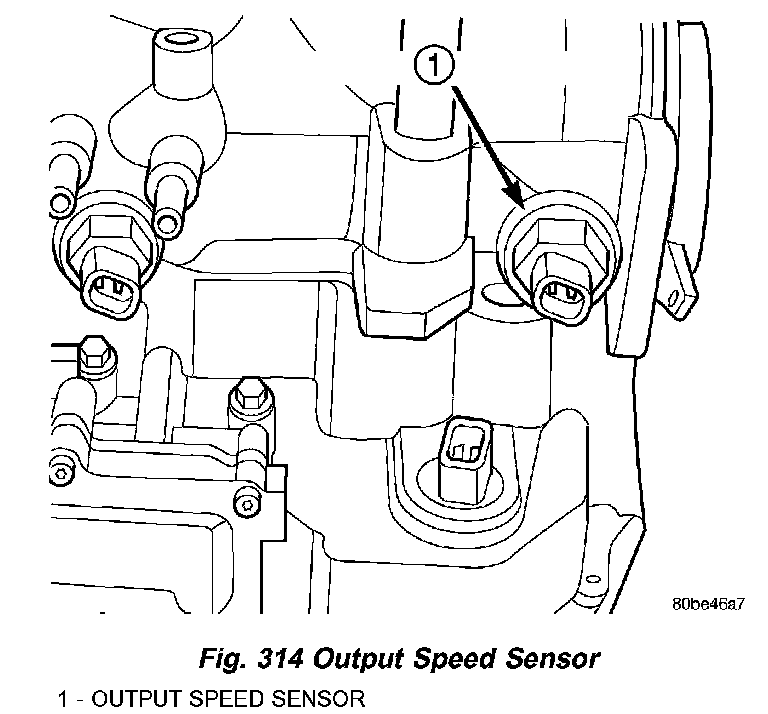 4. Unscrew and remove output speed sensor (Fig. 314).