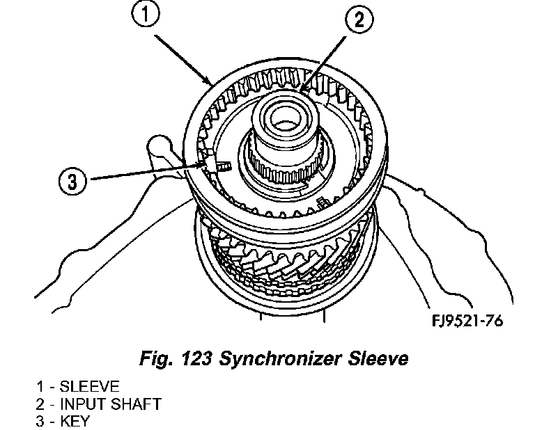 5. Slide sleeve over the hub and depress balls as you carefully slip the sleeve into position (Fig. 123).