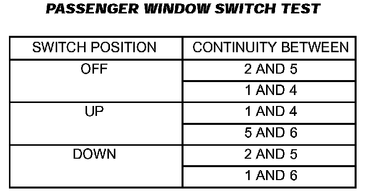 Passenger Window Switch Test: