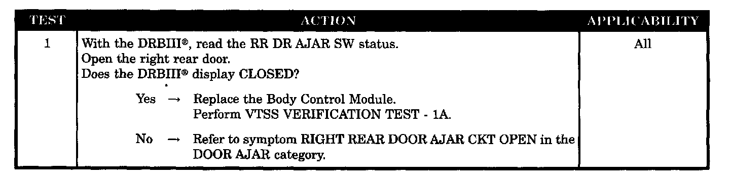 VTSS DOES NOT TRIP FROM RIGHT REAR DOOR
