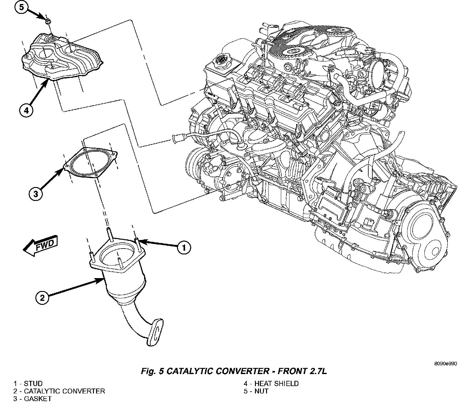 2. Position new gasket on converter inlet flange (Fig. 5).