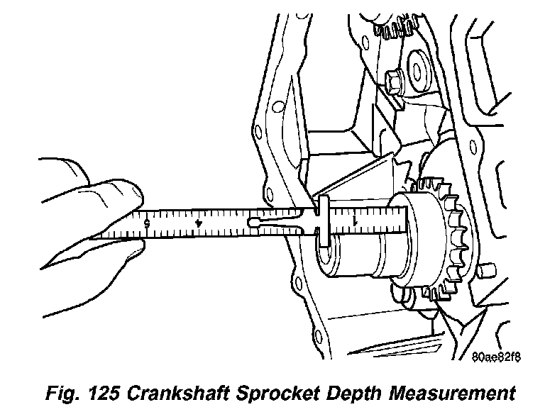 Verify that crankshaft sprocket is installed to proper depth by measuring from sprocket outer face to end of