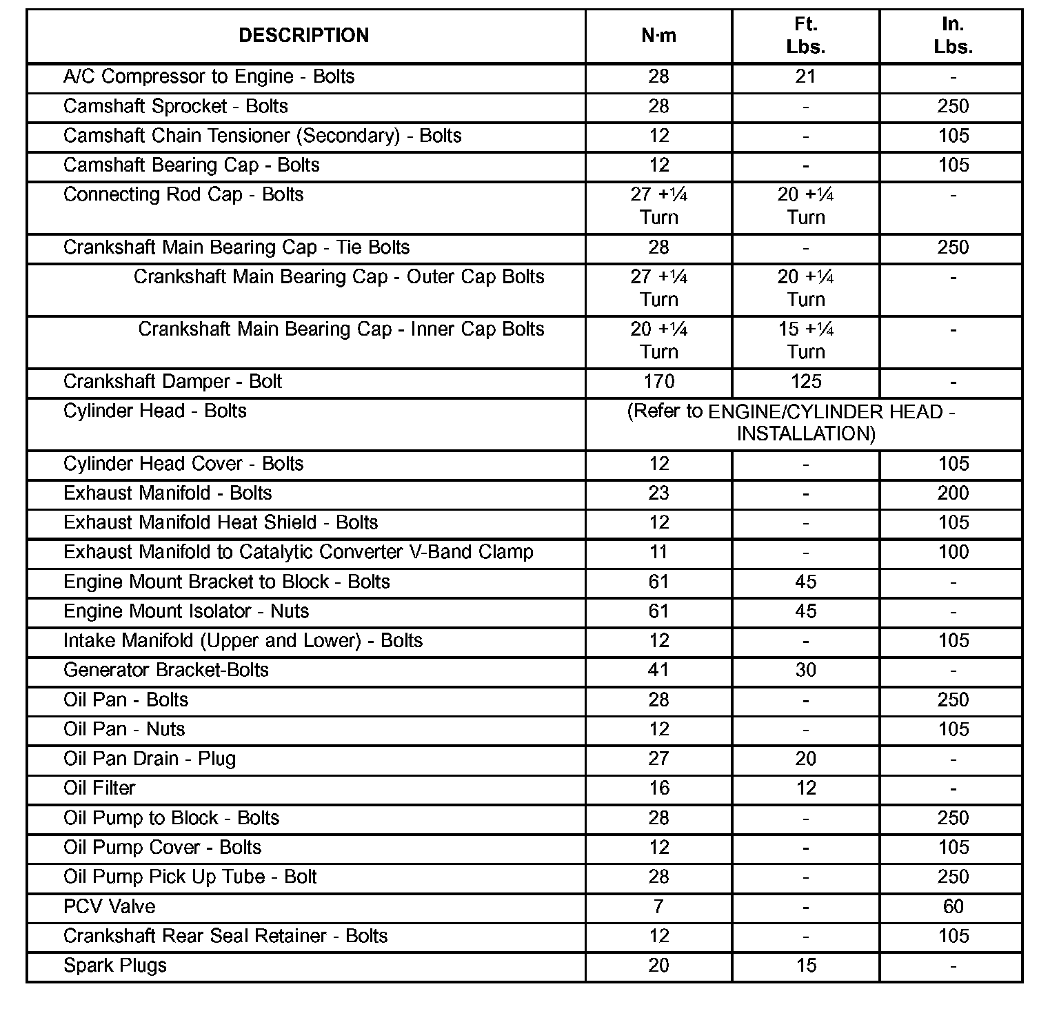 Engine Torque Specifications