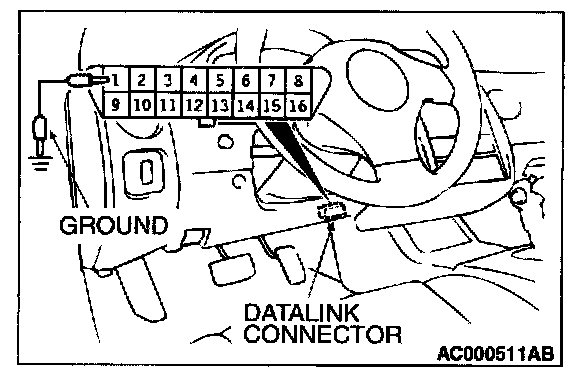 1. Disconnect scan tool MB991502 from the data link connector, or disconnect data link connector terminal (1) form the ground.