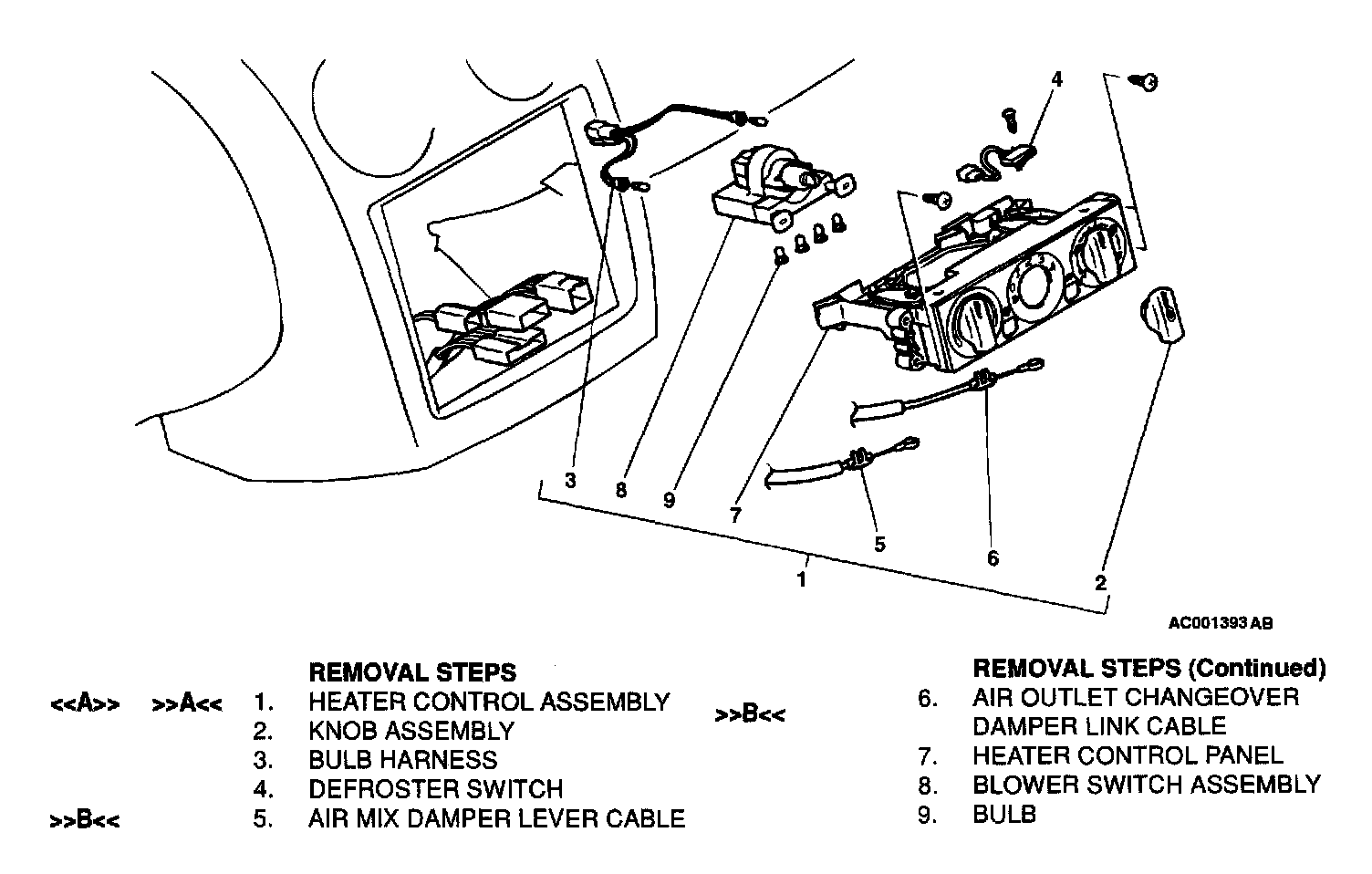 Heater Control Assembly And A/C Switch - Removal And Installation: