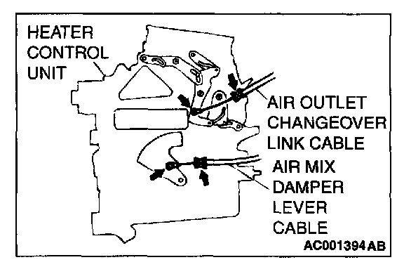 <> AIR MIX DAMPER LEVER CABLE, AIR OUTLET CHANGEOVER DAMPER LINK CABLE REMOVAL