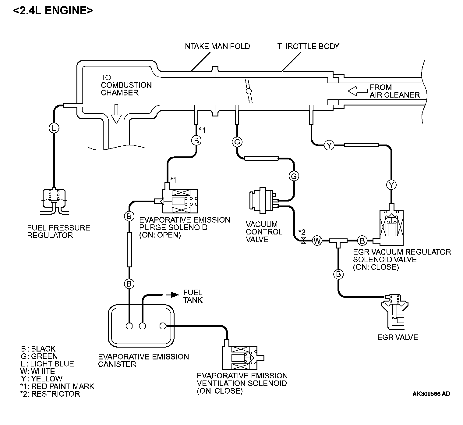 1. Using the VACUUM HOSE ROUTING as a guide, check that the vacuum hoses are correctly connected.