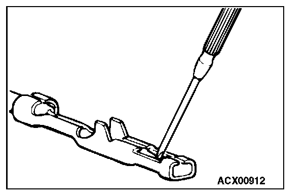 3. Press the contact point of the male terminal down by holding a screwdriver [1.4 mm (0.06 inch) width] as shown in the figure.