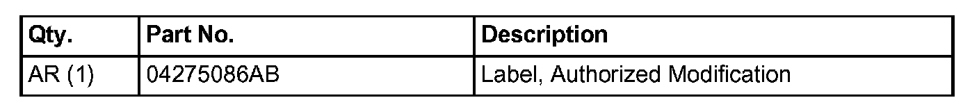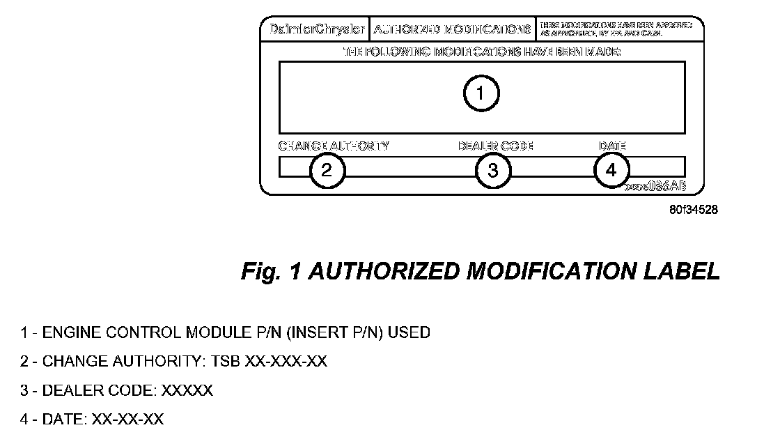 6. Type the necessary information on the "Authorized Modification Label" p/n 04275086AB and attach near the VECI label (Fig. 1).