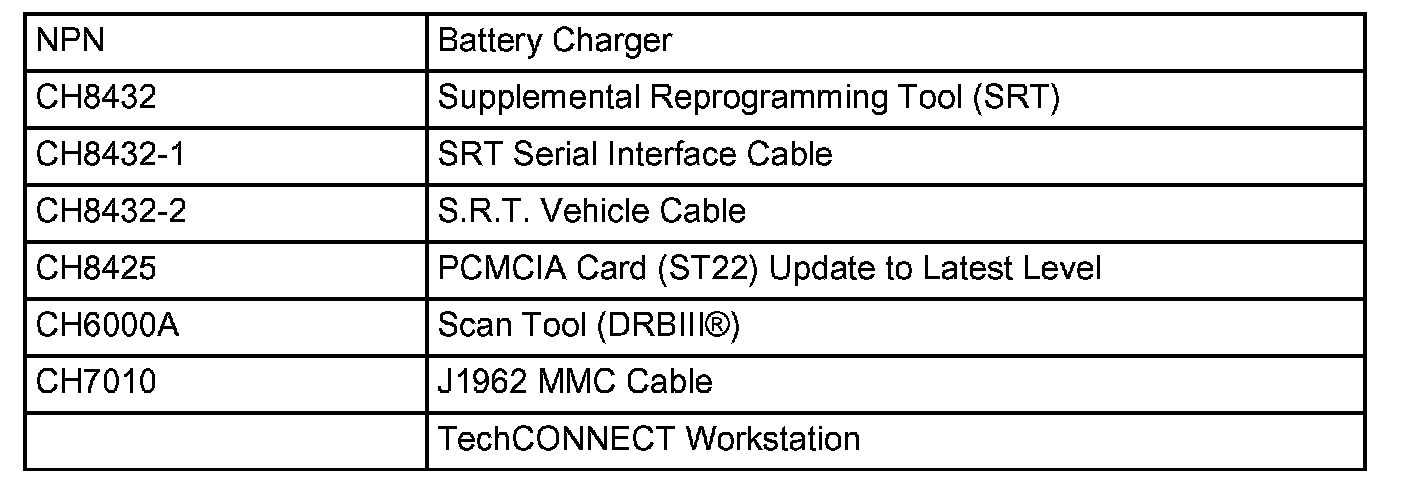 Using a Scan Tool (DRBIII(R)) with PCMCIA card p/n CH8425 and the appropriate Diagnostic Procedures, verify all engine systems are functioning as designed. If DTC's are present, other than the ones listed below, record them on the repair order and repair as necessary before proceeding further with this bulletin.