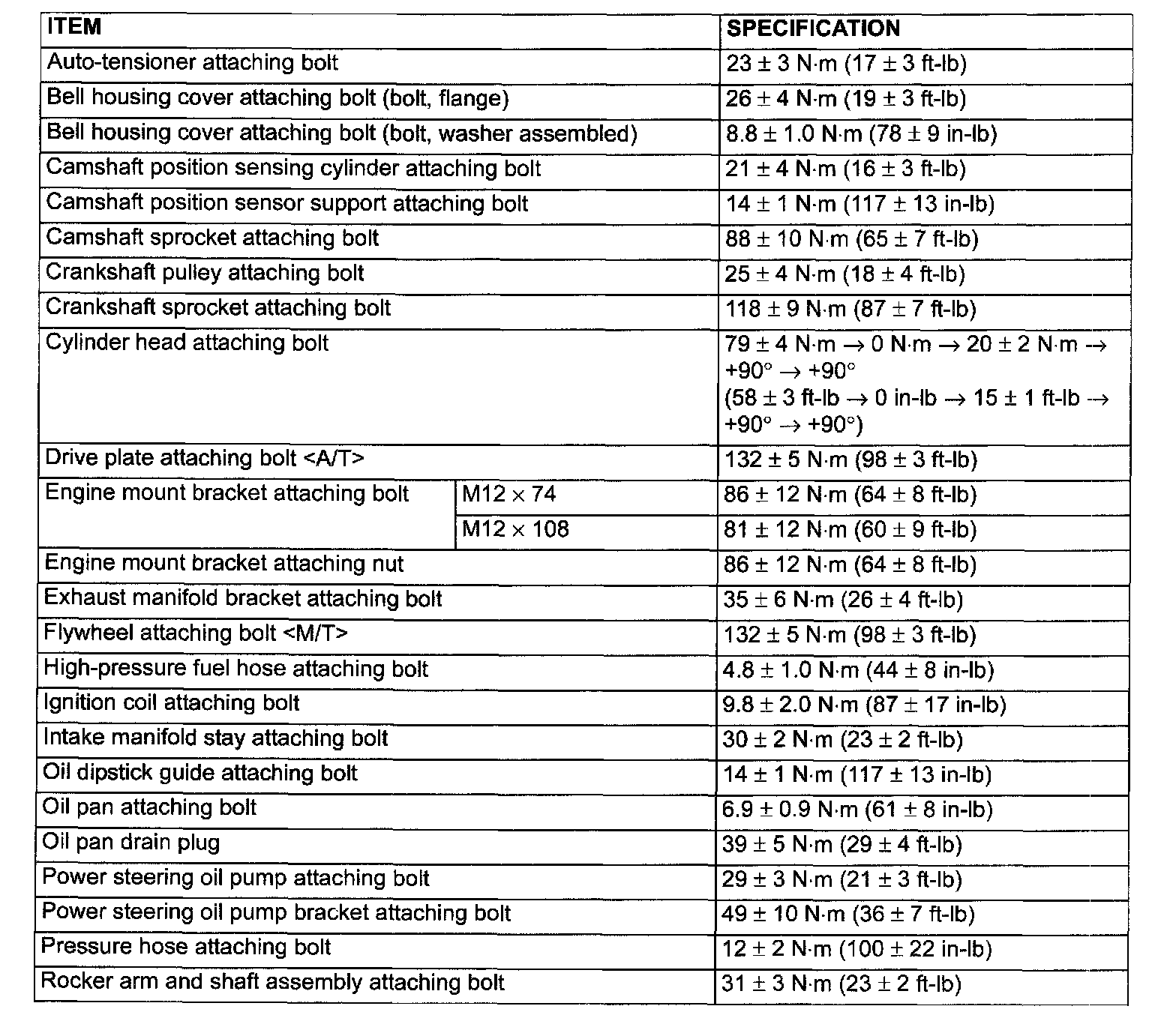 Engine Torque Specifications
