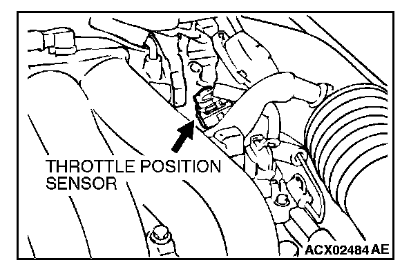 1. Disconnect the throttle position sensor connector, and connect the special tool MB991348 in between. (All terminals should be connected.)