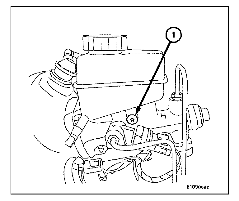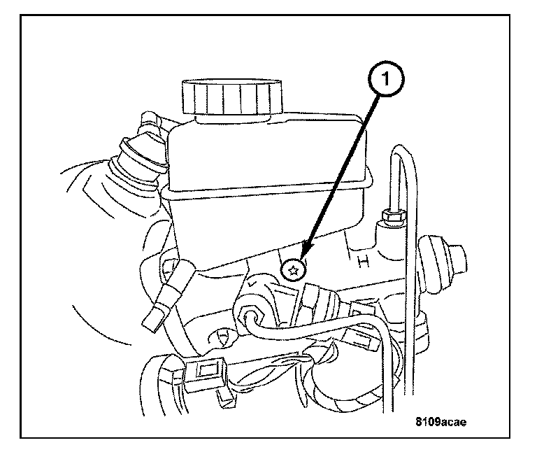 2. Install the screw (1) attaching the fluid reservoir to the master cylinder.