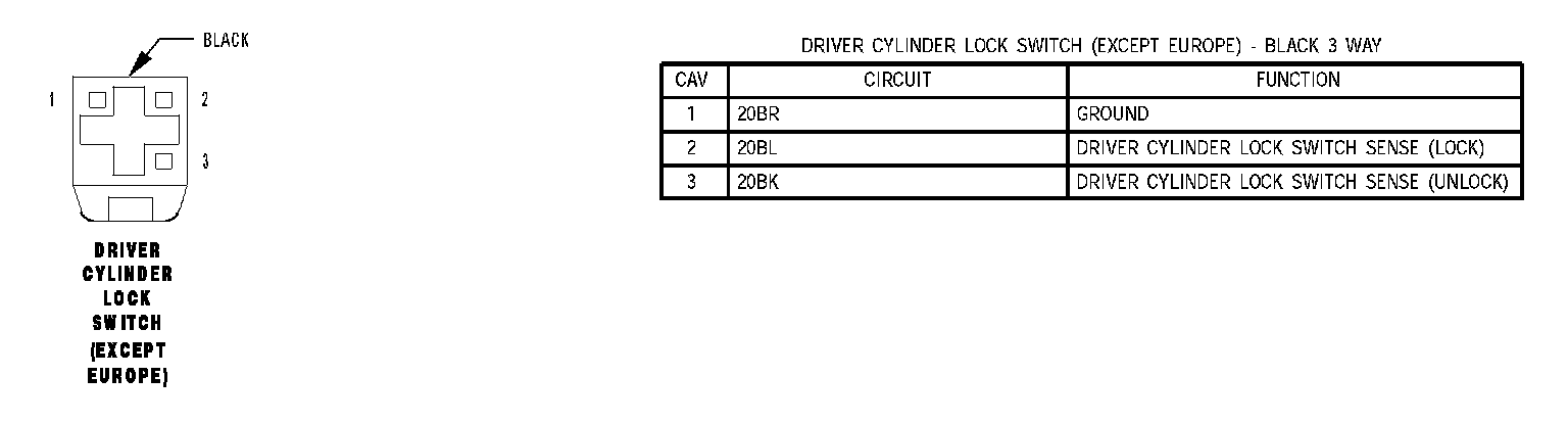 Driver Cylinder Lock Switch (Except Europe):