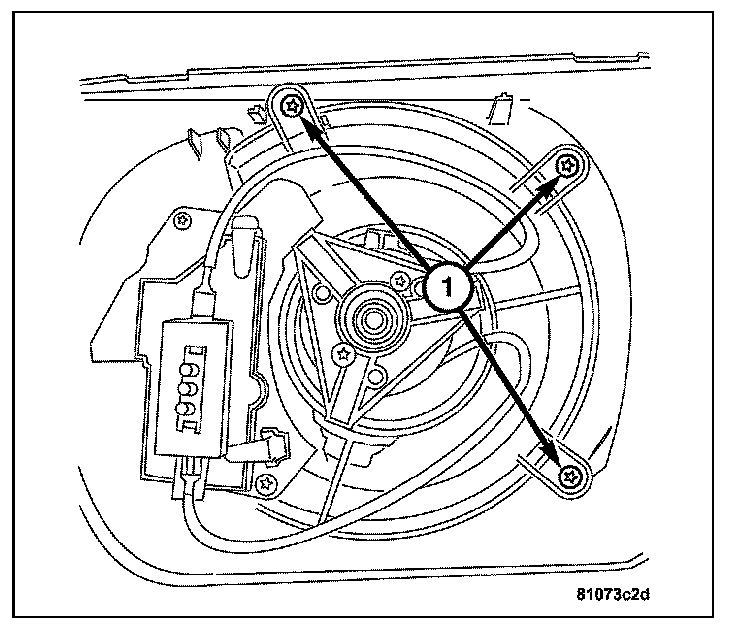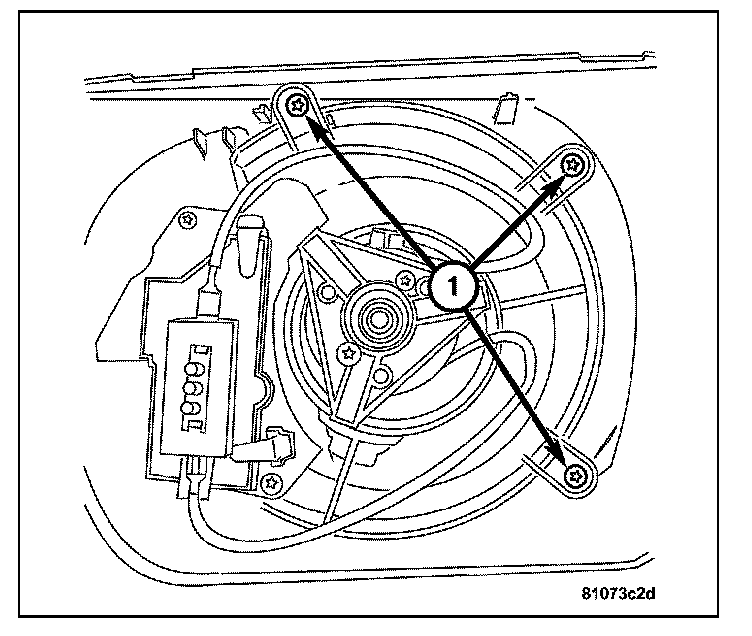 5. Remove the screws (1) attaching the blower motor to the heater housing.