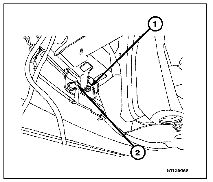 4. Disconnect the ambient air temperature harness connector (2) located next to the front fascia mount (1).