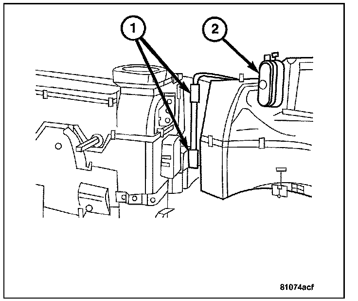 4. Disconnect the vacuum lines from the vacuum element (2).