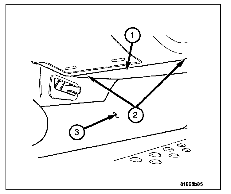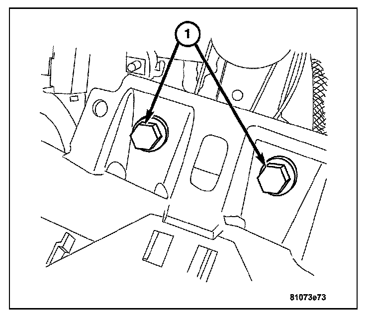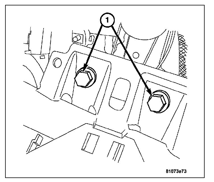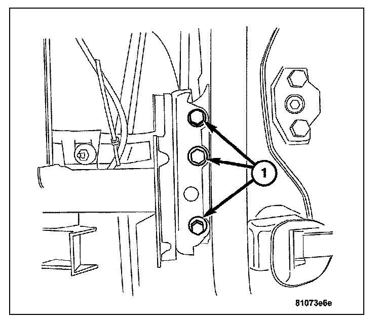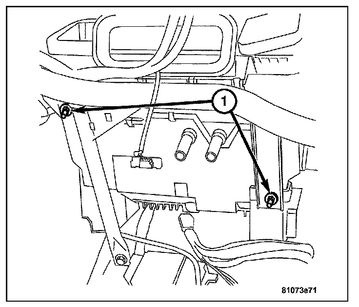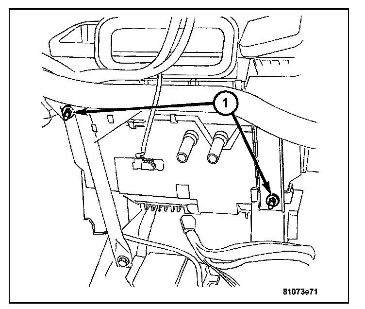 8. Install the bolts (1) attaching the instrument panel support to the front of the vehicle bulkhead.