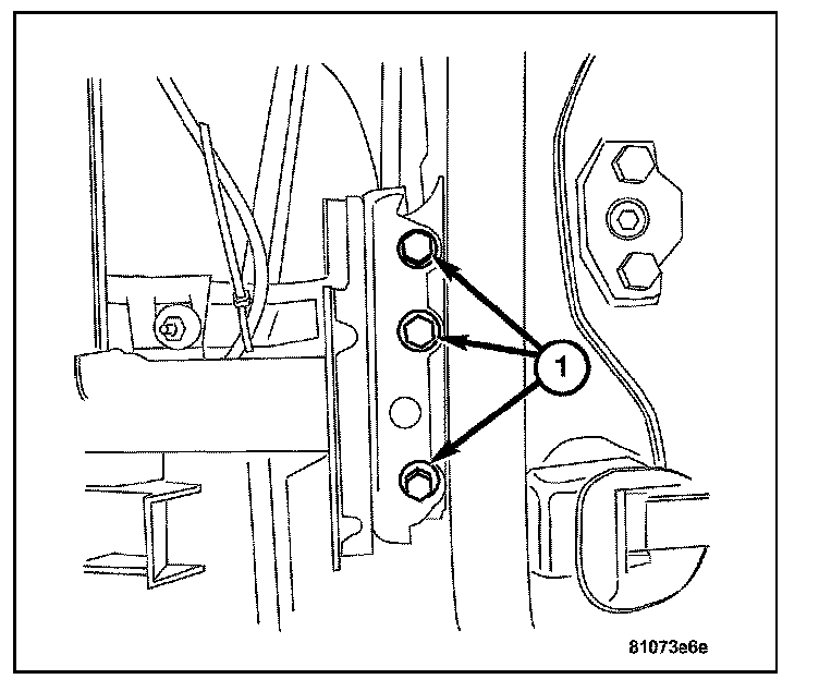 6. Install the bolts (1) attaching the instrument panel support to the A-pillars.