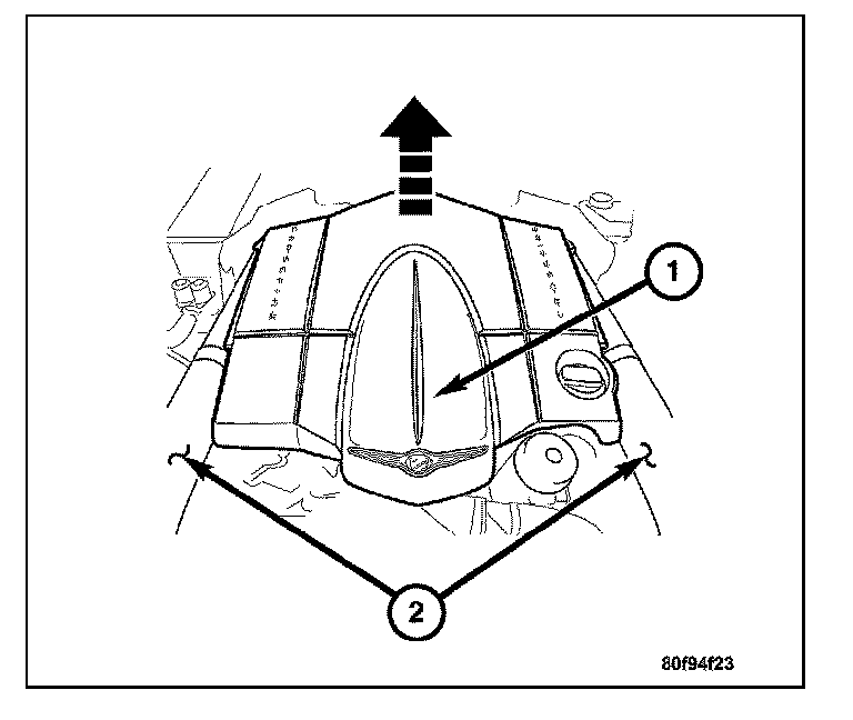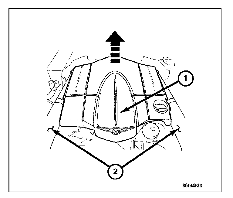 1. Remove the engine cover (1). Grasp both corners of the engine cover, and pull up firmly.