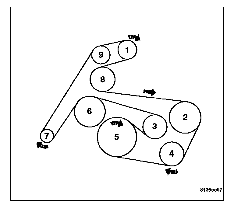 7. Start the engine and verify the accessory drive belt is properly routed and seated.