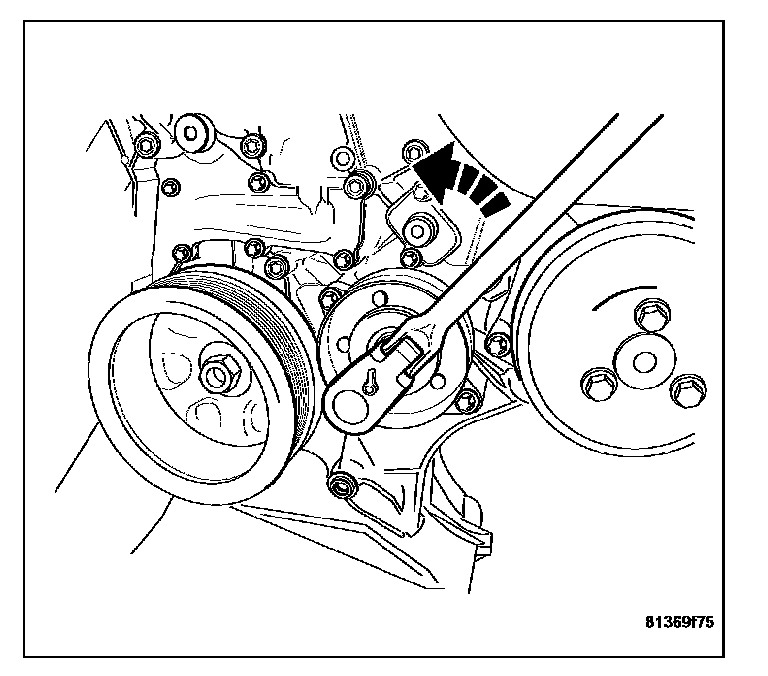 2. Rotate the belt tensioner counterclockwise and release the tension on the accessory drive belt.