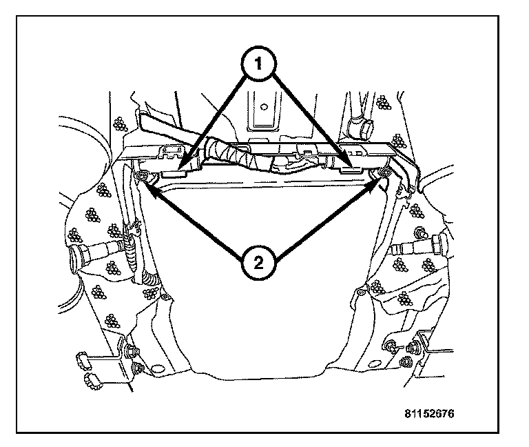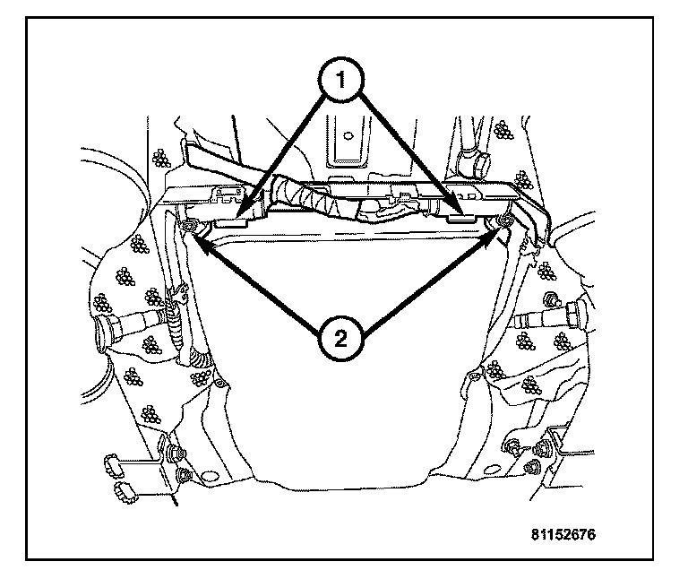 12. Install the heat shield and the bolts (2). Tighten the bolts to 8 Nm (71 in. lbs.).