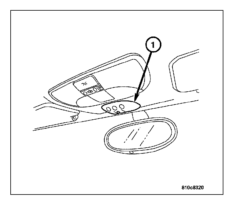 1. Install the Universal Garage Door Opener/Tire Pressure Monitor (1) by snapping it into the headliner.