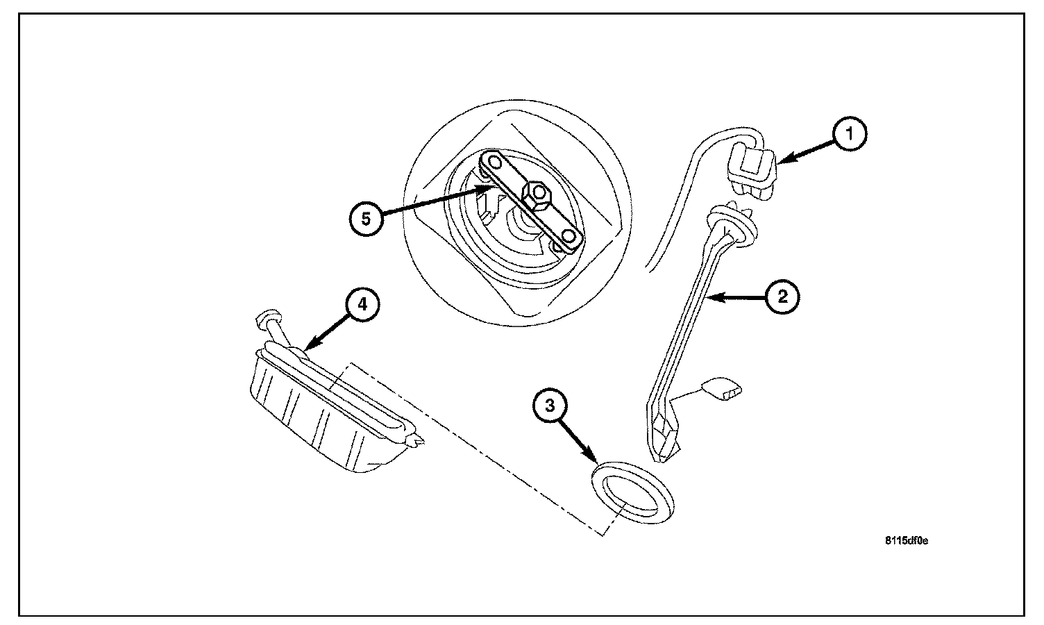 The Fuel Level Sending Unit (2) is combined with a Fuel Tank Pressure Sensor and is mounted at the top of the Fuel Tank (4) extending downward inside.