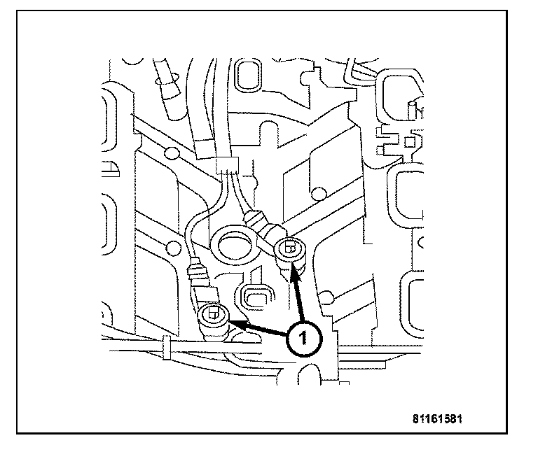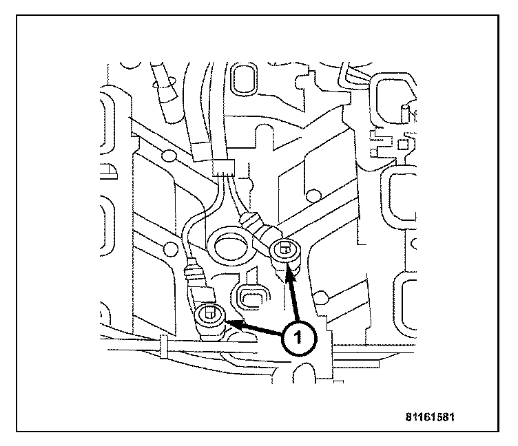 2. Disconnect the wire harness connectors at the knock sensors (1).