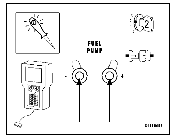 With the DRB III(R), actuate the Fuel Pump and observe the fuel pressure gauge.