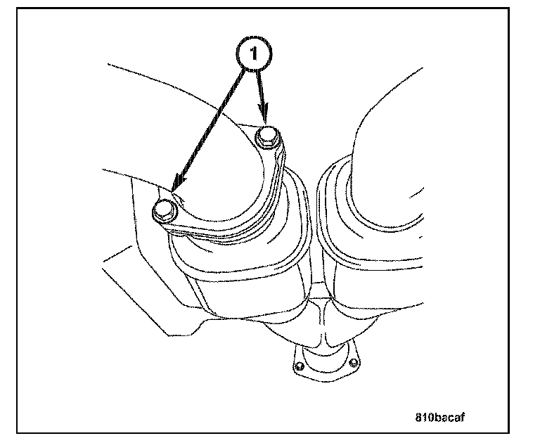 4. Remove the bolts (1) at the left and right side exhaust manifold flanges.