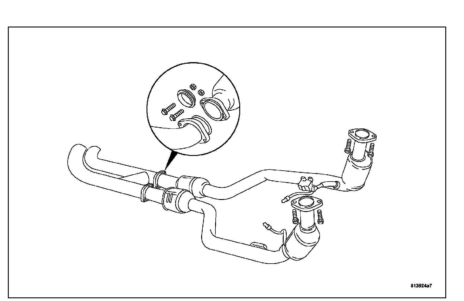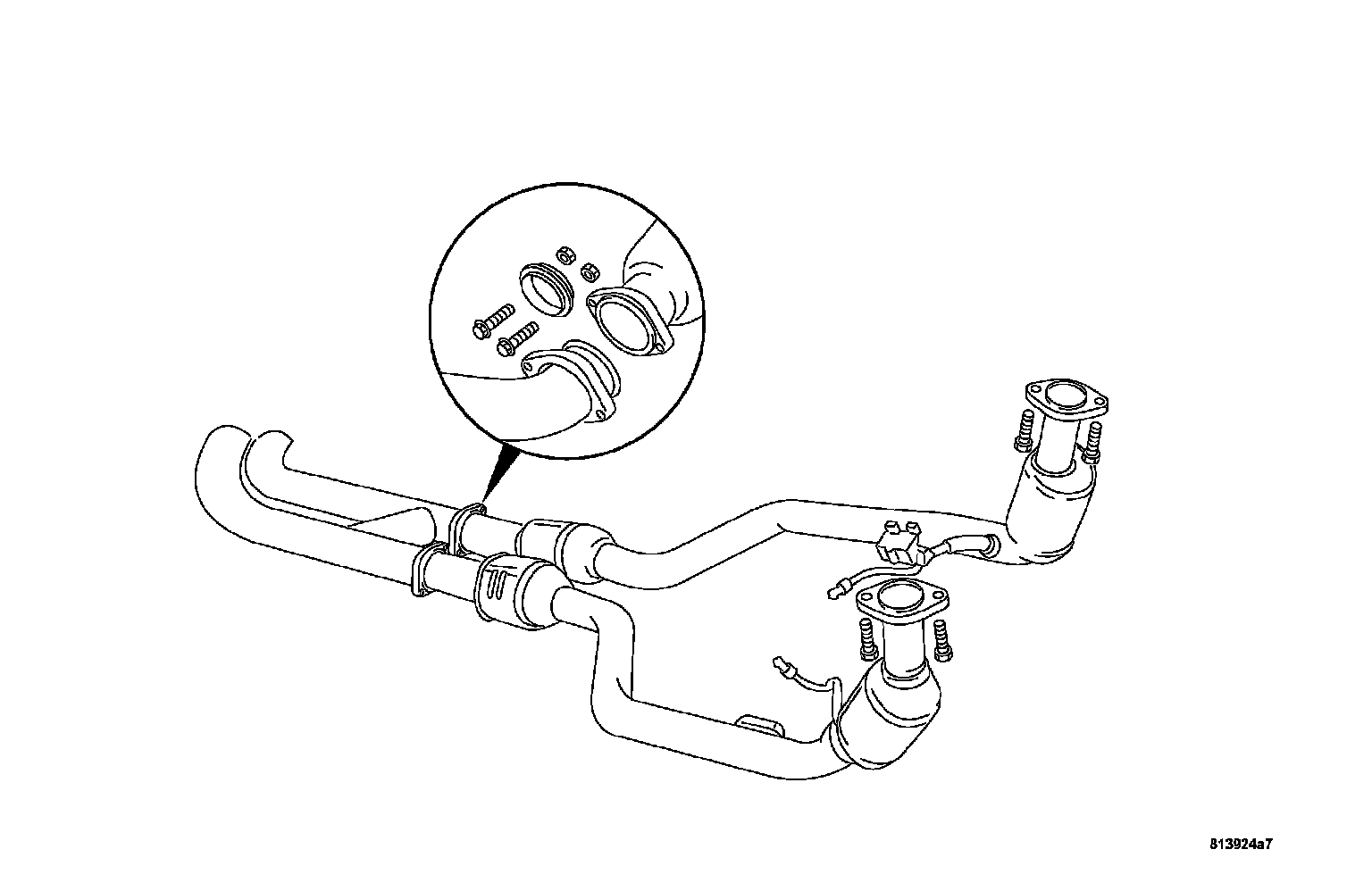 5. Remove the left and right side center exhaust flange bolts.