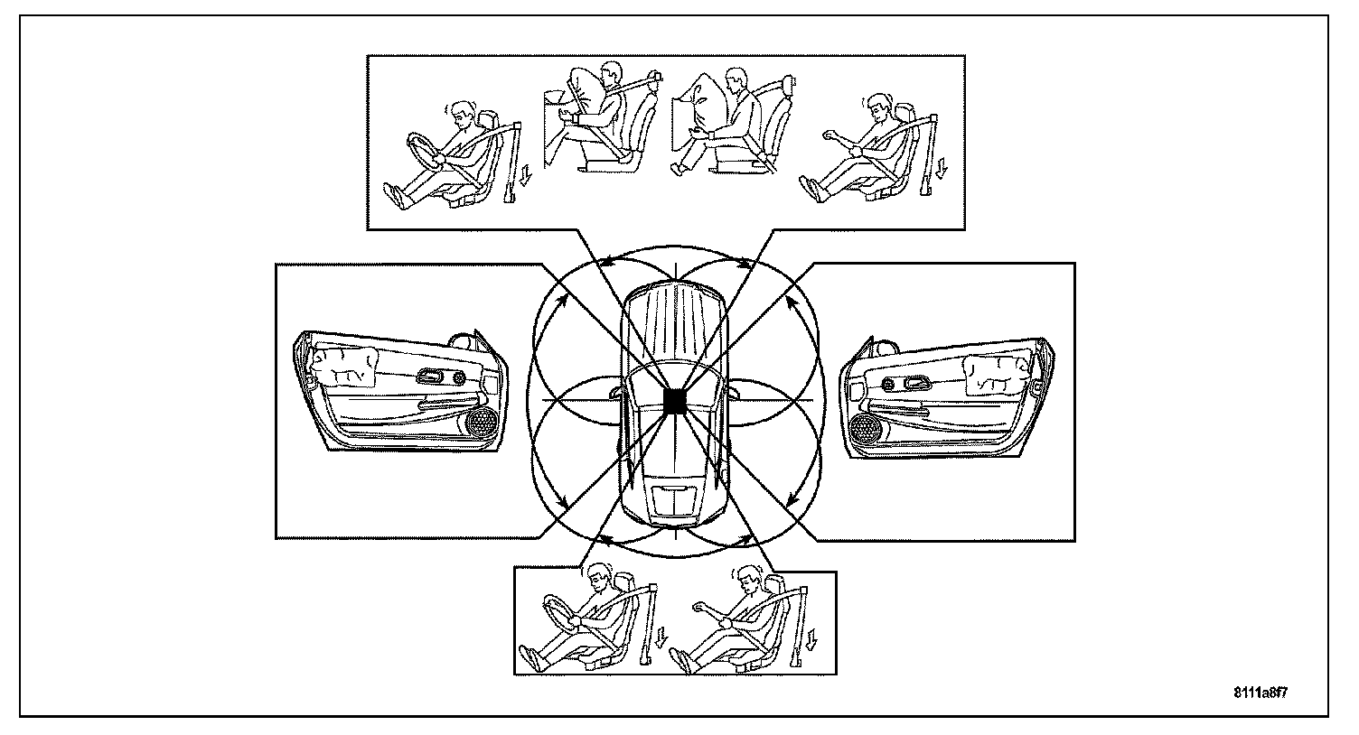 The Occupant Restraint Controller (ORC) determines the level of front air bag deployment force for each seating position based on the seat belt switch input status and the severity of the impact.When the predetermined impact conditions are met the Occupant Restraint Controller (ORC) deploys the front airbags and activates the Seat Belt Tensioner's (SBT).